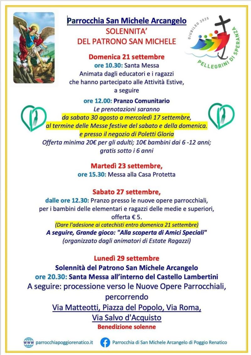 Eventi, Poggio Renatico, Zona Pastorale 10 Settembre 2025 Poggio Renatico Festa di San Michele Arcangelo di Poggio Renatico Dal 21 al 29 settembre 2025