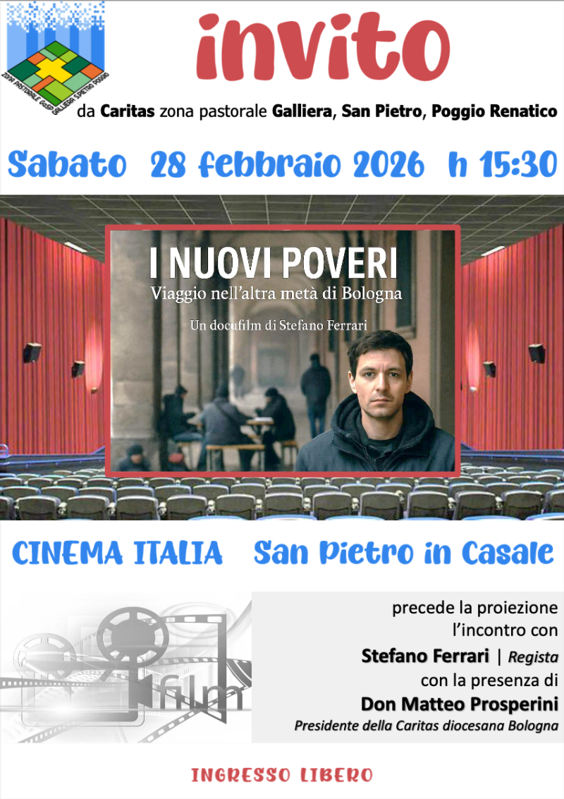 Zona Pastorale 15 Febbraio 2026 Sabato 28 febbraio, ore 15:30 I Nuovi poveri – docufilm di Stefano Ferrari Viaggio nell'altra metà di Bologna