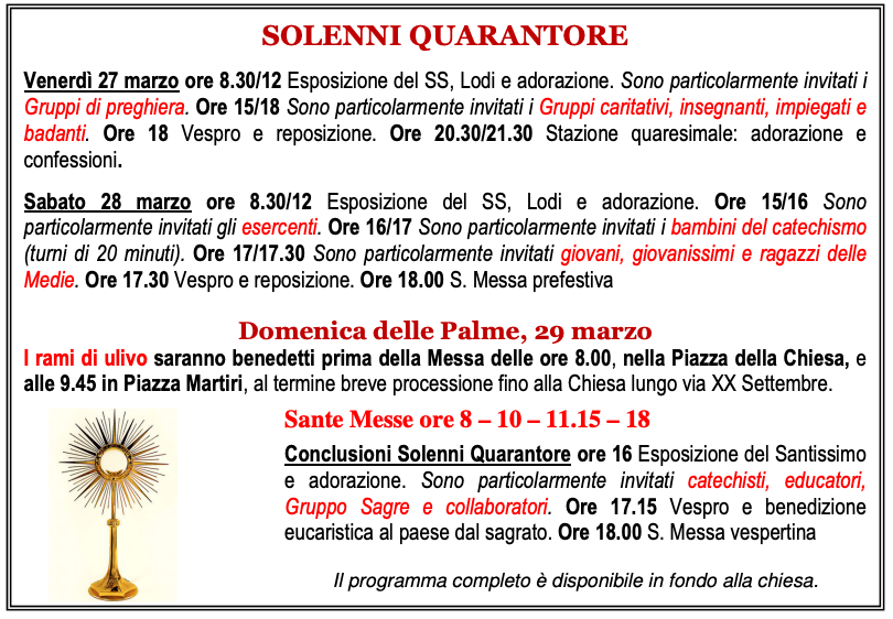 Ore 10:00 Santa Messa con Benedizione Ulivo