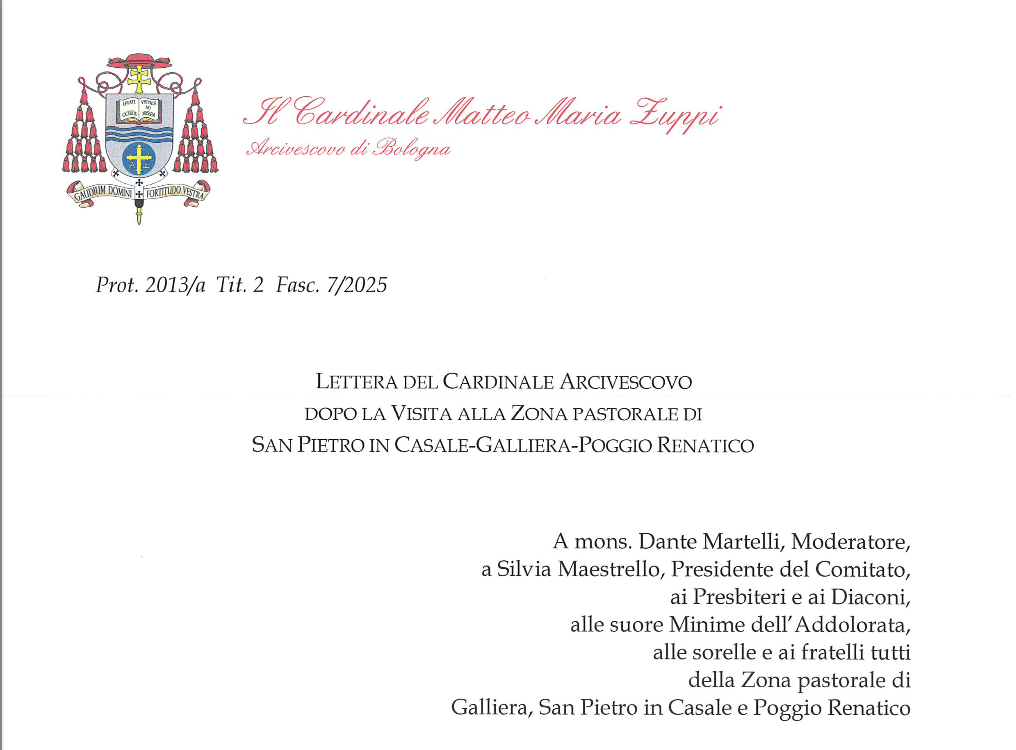 • Lettera del Cardinale Arcivescovo dopo la visita alla zona Pastorale GaSP