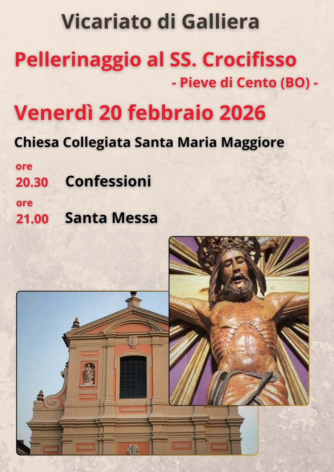 21:00 S. Messa del Vicariato di Galliera al Santuario Ss. Crocifisso – Collegiata di Pieve di Cento